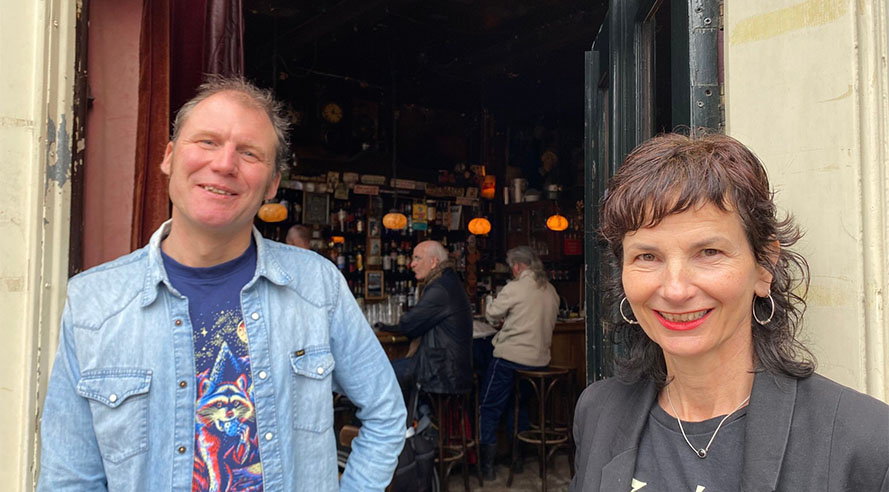 Ooit was er een wasserette en – diep in de vorige eeuw – een tabakszaak. Maar sinds 1973 is ’t Monumentje een échte bruine kroeg. Een klein, volbehangen, café waar de ‘vaste jongens en meisjes’ van alle leeftijden trouw aanschuiven. ‘In coronatijd, toen alles dicht was, zaten ze zelfs op het bankje voor de deur’, zegt Ingrid Verstraeten, samen met Pieter van Wijnsbergen uitbater van de zaak die inmiddels een begrip is in de Jordaan. ‘Zelf ben ik hier 26 jaar geleden begonnen. Pieter kwam er zo’n zes jaar later bij.’