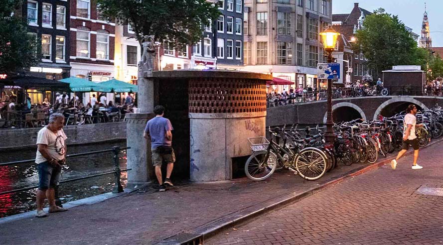De geur, het gevoel dat je bekeken wordt, gluren door het klavertje, de walk of shame: piesen in de plaskrul is een hele ervaring. Ondanks de geur wordt het doel uiteindelijk bereikt: verlossing. Hier maak je de mooiste plasjes van Amsterdam.
