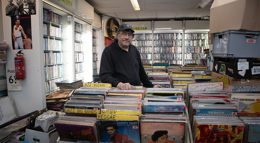 ‘Op dit moment verkoopt hiphop het best en met name van rapper Mac Miller. Het verbaast me dat het op lp beter verkoopt dan dat ze ooit op cd over de toonbank gingen. Dan denk ik: hoe kan dat nou? Vroeger kwam ik er niet van af en op plaat loopt het wel.’