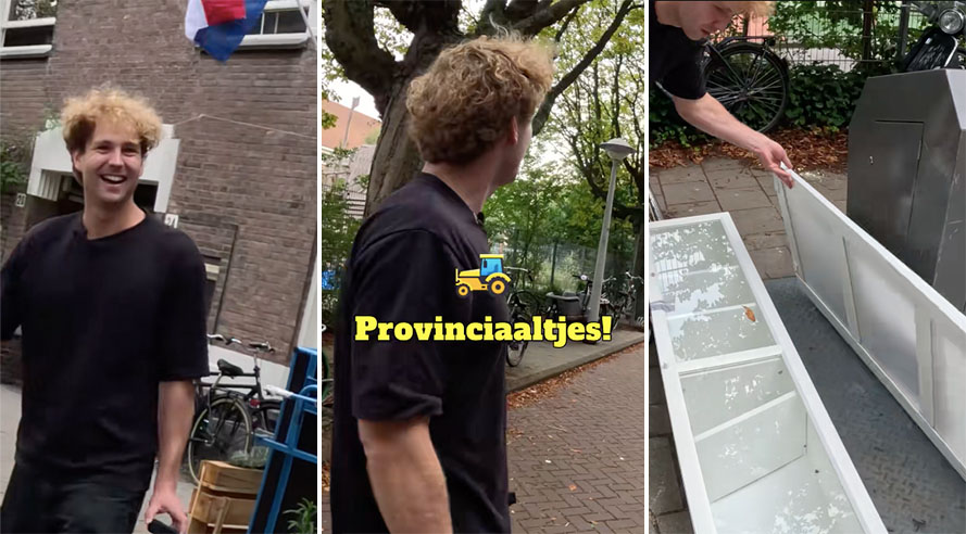 In onze hoofdstad zijn ze ook op zoek naar handige spullen. Nadat ze een uit elkaar gehaalde kast bekeken en een onderdeel laten vallen, krijgen ze op hun donder van de Amsterdammer. ‘Wat zijn jullie nou de hele tijd aan het doen, man? Pannenkoeken, provinciaaltjes!’, riep de man naar de jongens.