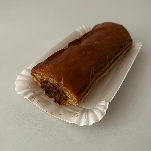 Oordeel: Het halal gehakt komt van Black Angus runderen, dit zorgt voor heerlijk mals vlees. Het deeg kraakt bij het aansnijden en valt van versheid uit elkaar. De vulling is zacht, smeuïg en vol van smaak. Dit is niet voor niets misschien wel het bekendste saucijzenbroodje van de stad. Voortreffelijk!