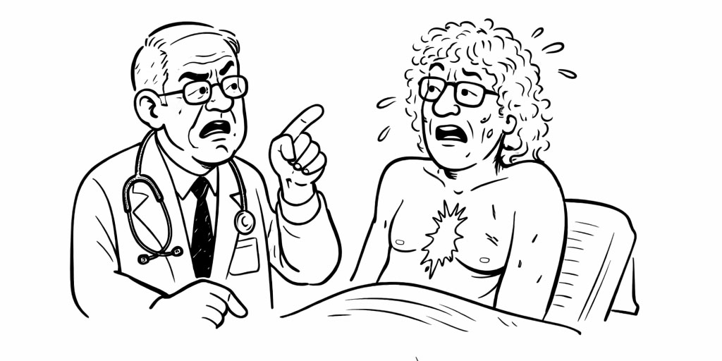Zegt de dokter: ‘Meneer, uitsluitend met uw eigen vrouw. Want u mag zich totaal niet opwinden.’’