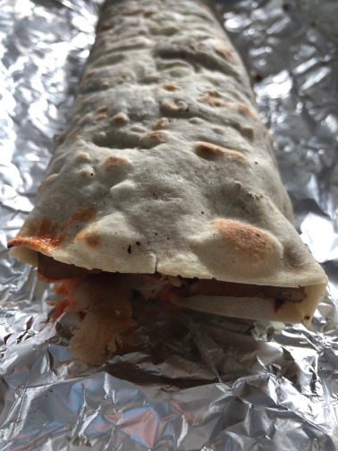 Oordeel: Rijkelijk gevuld, maar voor de liefhebbers van spicy. Het deeg is iets dikker om de vele ingrediënten op hun plaats te houden.