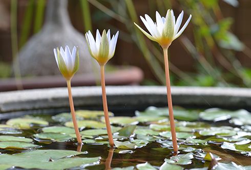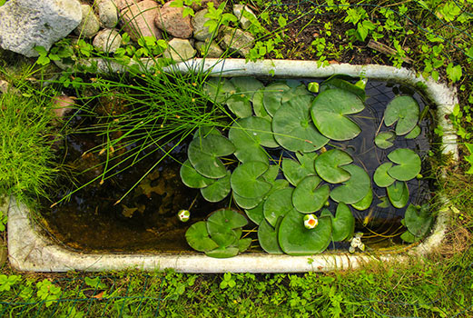 Kabbelend water, drinkende en badderende vogels en misschien zelfs een zwemmend kikkertje. Ook in een kleine tuin of op een balkon zijn er genoeg vijvers ideeën om toch te kunnen genieten van de levendigheid die een miniatuurvijver in je tuin brengt.