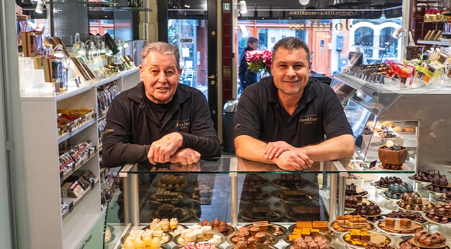 In deze rubriek belichten we bekende Amsterdamse familiebedrijven. Deze maand Job Klebach (79) en zijn zoon Jordi (48) van Chocolaterie Dessertia Jordino.
