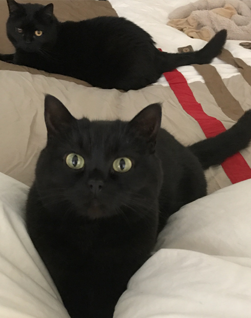 Baruch en Zmira zijn nu al zeker 12 jaar in mijn leven. Baruch komt uit Amsterdam-Zuid en Zmira uit Amsterdam-Noord. Ondanks dat ze uit een verschillend nest komen, zijn het dikke vriendinnen en komt vooral Baruch als een moeder voor Zmira op. Ze hebben het goed hier in ons liefdevolle huis met een stralende tuin. Elke dag voel ik mij gezegend. Baruch betekent (Hebreeuws) ‘gezegend’. En Zmira (ook Hebreeuws) ‘nachtelijke metgezel voor goede gesprekken’.