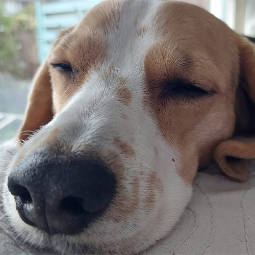 ‘Onze 2,5 jaar oude Jackson is in het laboratorium geboren, waar ze met Beagles proeven doen. Het is – vinden wij – de liefste hond van de wereld.’