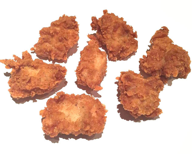 Oordeel: De welbekende, dik gepaneerde en met peper gekruide kipnuggets met een lekkere bite. So far, so good. Een boneless bucket is misschien iets gevarieerder.