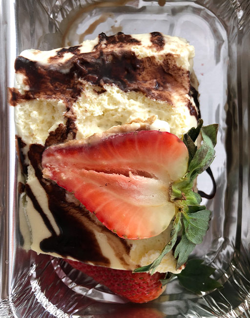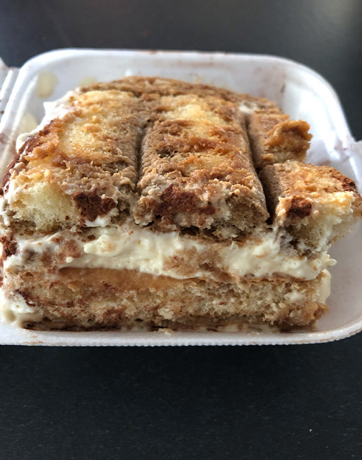 Oordeel: Een tiramisu meegeven in een hamburgerbakje is nooit een goed idee. De mascarpone is zo zacht als vla waardoor je dit dessert doorstaat volgens het hap, slik, weg-principe.